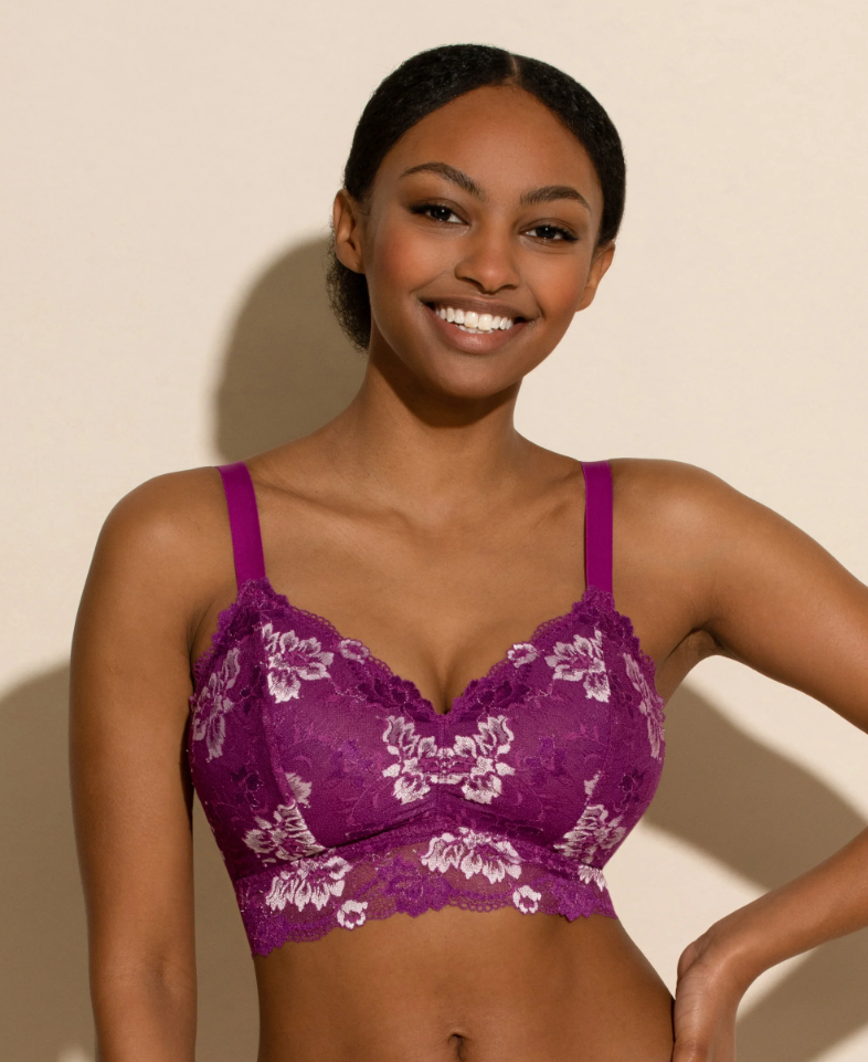 With gorgeous two- tone floral lace, the Savona Curvy Bralette enhances your style. With full coverage cups, the Savona Curvy Bralette gives you the support you need. Designed and sized specifically for those with full busts with smaller bands.