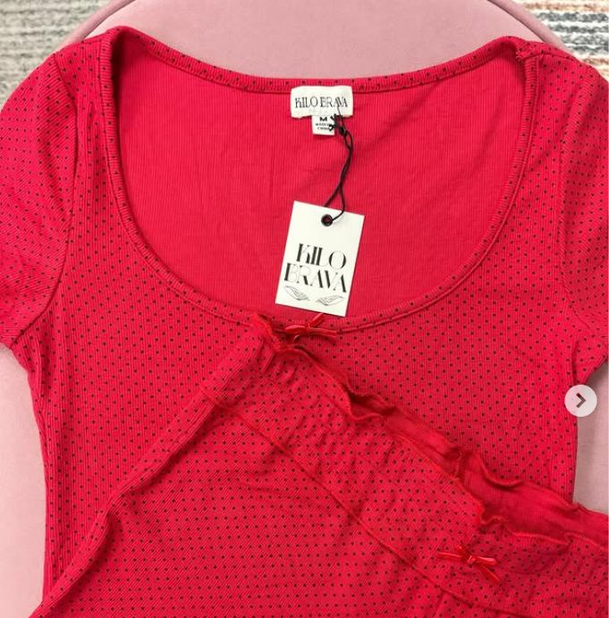 Happy for the holidays in the Kilo Brava Red and black polka dot Modal Cap Sleeve Pajama Top.